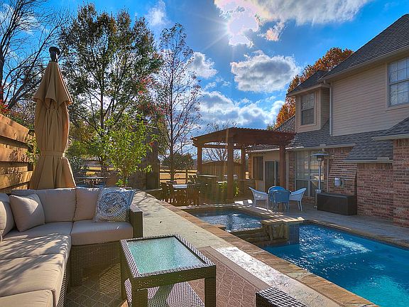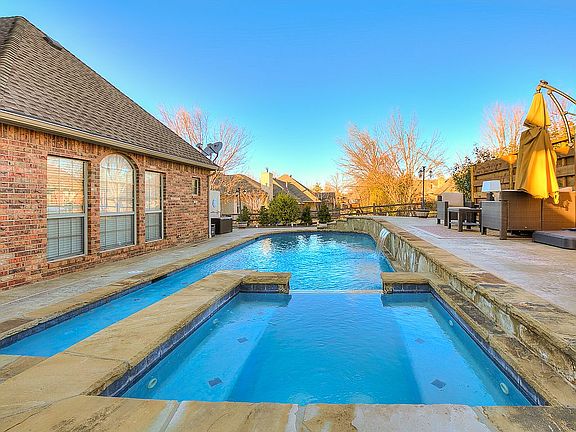 Stunning home on COFFEE CREEK GOLF COURSE on a secluded cul-de-sac. Backyard boasts a HEATED POOL W/ WATERFALL & HOT TUB, PERGOLA, OUTDOOR KITCHEN and OUTDOOR FIREPLACE! WOW!!!! Enter the home from this backyard oasis through a cozy SUN ROOM. Indoors you will find beautiful hand scraped wood floors and upgraded granite counter tops throughout. Master bed down, 3 bed up all connected to a full bath. Spacious Bonus upstairs with built ins, surround sound and a bar w/ fridge. Dine in the wonderful formal dining room with designer lighting and accented with plantation shutters. Entertain in the gorgeous formal living with surround sound, built ins and a cozy fireplace. Executive office has a built in desk, chair rail, crown molding and plantation shutters. Separate water heaters upstairs and downstairs will never leave you out in the cold. New roof in 2012! So many upgrades to this home make it a must have for anyone who likes to entertain!