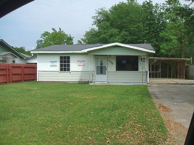 Exterior Features:This house is on a 6472 sq ft lot. Curb appeal is fair. Siding is vinyl and in fair / poor condition. Roof is conventional composition shingle in fair to good condition, no leaks found. No car port or garage. Parking is in drive way. An addition started on the right side of house, framed but not completed. Interior Features:This is a 4 bed, 2 bath house with 1560 sq ft. Flooring is linoleum tile in the living room, kitchen and in good condition.The bedroom floors are linoleum flooring also in poor condition. Bathroom floors are linoleum and in need of replacing. The kitchen has ample cabinet space in reasonably good condition. Drywall and ceiling in fair to good condition with some repairs needed. No appliances present in kitchen. Hot water heater present and looks to be fairly new. Washer/dryer hooks up present. A/C unit present however appears to be non working, detached from connections.