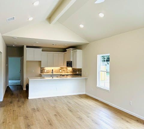 This gorgeous 2024 home is the latest from locally-owned Apex Custom Homes. Walk in to a welcoming living room with vaulted ceiling and an open concept kitchen with stainless steel appliances, custom cabinets, quartz countertops and a kitchen breakfast bar. 3 bedrooms come equipped with ceiling fans and each room is wired for internet & TV. The double vanity hall bath boasts a built in shower tub with custom tile running to the top of 9' walls. Get the laundry out of the way in a dedicated space with large cabinets and a washer & dryer hookup. In the master bathroom you'll find a glass-enclosed shower with custom tile work from floor to ceiling and a walk-in closet. Worried about electric bills? This home is completely enveloped in spray foam insulation in addition to having energy efficient windows and appliances. After a hard days work step out into your own landscaped private back yard with lush grass, surrounded by a 6-foot privacy fence. And there's more! This lot is LARGE with a total of 0.36 acres included. Located on a dead-end street with limited traffic and 5 minutes from grocery stores and restaurants...what's not to like!! Tenant pays for all utilities. Tenant takes care of yard. No smoking. No criminal history. Lease is for 1 year minimum. Good credit score and positive referral from last rental experience required.
