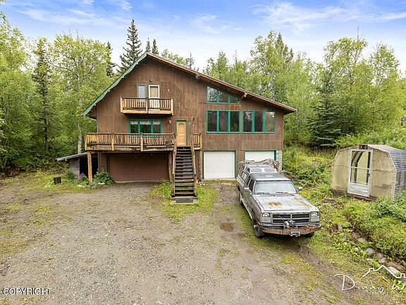 Nested in a quiet wooded neighborhood, enter this home by the living room and to the left you'll see the kitchen / dining area. To the right you'll see the open and spacious and recently added large family room with huge south window and a new gas fireplace. There are 3 bedroom, 2 bathrooms. On the first floor are 3 garages with 1 being is a wood shop. Definitely put this home on your view!In this recently built large Family Room is a loft area that can be used as a bedroom. Finish the flooring in the Family room and enjoy a spacious area and relax in the natural light. This home is decorated with milled wood that gives it a rustic feel. It's also within a mile of Neklason Lake with Public Access at the end of Breezewood Road.