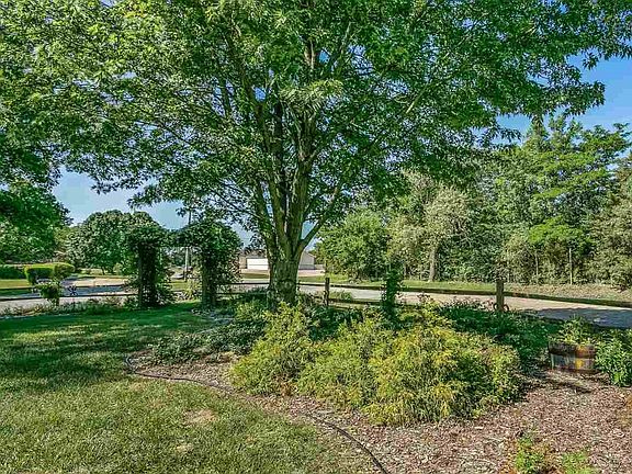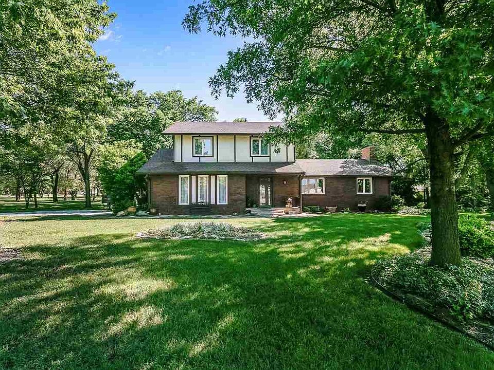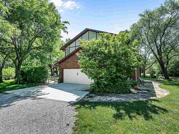 Effective July 26, Sellers are offering a $4000 decorating/appliance allowance with an acceptable offer! Quiet country living in the city, just west of 37th and Woodlawn, in a neighborhood of large lots and no HOA. This home sits on .85 acres, with log fencing in front, two sheds and an 1100 sq ft shop. Home is a 1 1/2 story, partial brick with 5-year-old roof and a newly-poured garage floor and driveway. Home's interior is warm and inviting with its large rooms, beamed vaulted ceiling, beautiful walnut kitchen custom cabinetry and a wood-burning fireplace. Morning light pours in the hearth room windows with views out to the lush yard filled with a variety of trees, shrubs, perennials and spring-flowering bulbs. Main floor laundry also has a handy half bath. Upstairs, find 3 bedrooms, including the master, all ample in size and with bathroom updates. Basement features an office and family/rec room along with storage. Find shade on the covered back patio, an excelent retreat any time of day. Shop, built in 1992, is divided into one large and two small rooms with concrete floor. In the shop, the heat pump and electricity are on a separate meter. It also features an exhaust system as well as attic storage. An established 1000 sq ft organic garden, planted for this season, is setting on vegetables and fruit for you to harvest! Yard behind the home is fully fenced. Appliances remain and most mechanicals are updated/new. Home is very close to shopping and dining wih Koch Industries nearby.