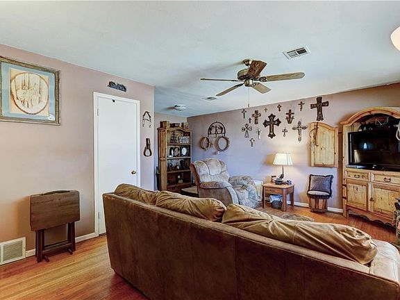 Great curb appeal on large corner lot with side entry garage, updated windows, hardwood floors, 2nd living could be a 3rd bedroom or study, original teal tile in bathroom, stainless appliances, 1 car oversized attached garage plus a 2 car carport.