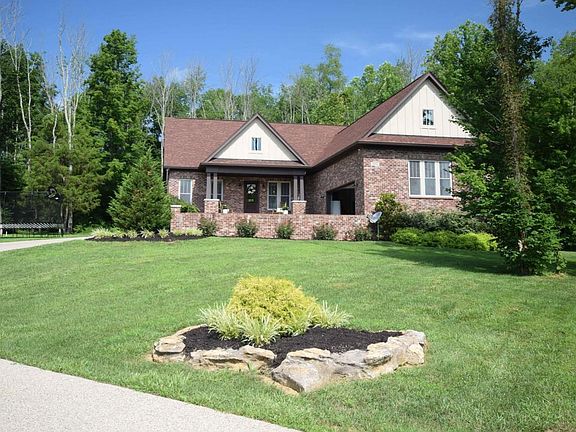 Custom built six bedroom home with attention to detail at every turn. This stunning 1.5 story home has a large partially wooded 1.8 acre lot and is nestled into the end of a quiet cul-de-sac. From the moment you walk up to the front door the custom features capture you. There is a wonderful front porch with a stained wood ceiling that welcomes you into the home. The foyer, kitchen, great room, and office area have hardwood flooring. There is plenty of crown molding throughout the first floor and the kitchen and great room are open. There is a huge island in the kitchen with granite tops, stainless steel appliances, a coffee center and more. The first floor boast two master suites. One is the owners suite and the other is a mother in law suite, both have large walk in closets.
