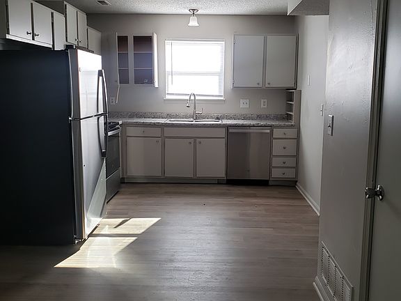 This is a freshly painted 3 bedroom, 1.5 bath townhome. Very clean and move in ready. All new flooring, hard surface luxury vinyl plank flooring on main floor and kitchen and baths. Updated lighting, miniblinds, plumbing fixtures. JWasher dryer hookups. One car garage. Spacious eat in kitchen with patio door to the back yard. All new kitchen appliances including stove, refrigerator, dishwasher and microwave. New garage door to be installed soon! Wood burning fireplace in living room. Close to the turnpike entrance for Topeka and KC commuters. Near 6th street Walmart, Dillons, Sprouts. Yard is not fenced but there is a privacy screened patio. Tenants are responsible for mowing and snow removal. Pet friendly with breed approval .