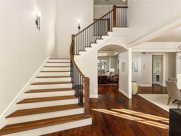 This estate merges the landscape of a mountain home with the classic look of stucco and white stone set on a cul-di-sack that backs up to a greenbelt (with walking trails and parks.) This remodeled house has new Pella windows throughout. As you walk into the house you will see a beautiful staircase and entryway. A study with built-in bookshelves and glass paneled doors for privacy is perfect for your studies. To the right you will find a dining room that opens to a front patio space for alfresco dining. The living room has a beautifully remodeled stone hearth with carpentry work surround. This space opens to the remodeled kitchen with island and double sinks. The addition to the home extended the kitchen and added a dining room. Outside a 1,200sf covered kitchen/dining/living room with fireplace was added as well as a new pool, spa, and above ground gardens. The primary bed is down and upstairs you will find two large bedrooms and a gigantic bunk room.