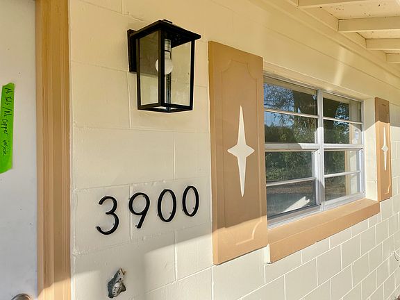 This home has fresh paint inside and out on a quiet street. The living room and kitchen have an open floor plan, with a separate dining room through French doors. Tile floors throughout make it easy to keep clean. New roof and concrete block construction make it solid as a rock. Inside laundry room has washer and dryer. Stove and refrigerator are also provided.