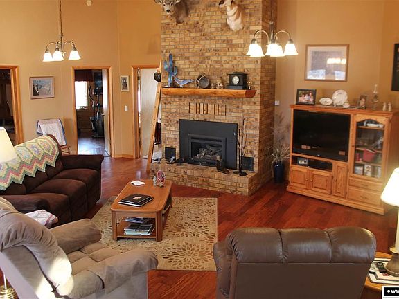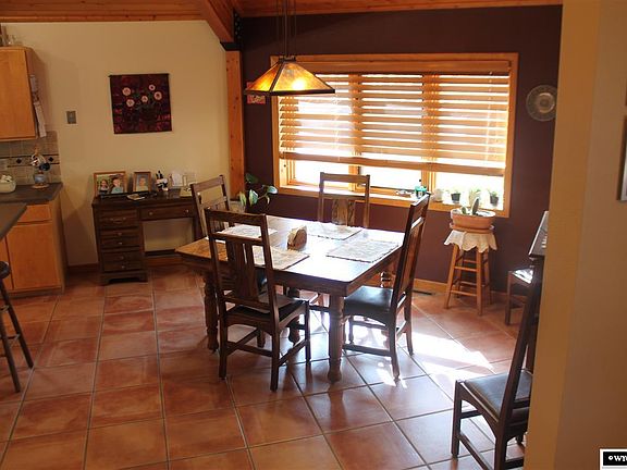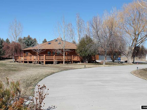 This isn't your run of the mill ranch style home! You will love this octagonal shaped log home for it's unique architecture, edge of town location & welcoming Wyoming feel! The home boasts a spacious open floor plan with skylights, cathedral ceilings, hardwood floors & cozy gas fireplace. The entire home has warm neutral tones flowing nicely with the log cabin atmosphere. The master suite offers a tile walk in shower, double closets & a private patio perfectly situated for a peaceful evening or hot tub.