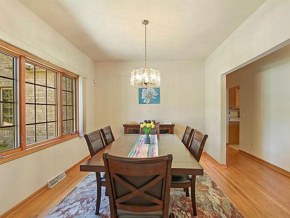 This stunning all brick ranch home offers a split floor plan with master ensuite on one side and other two bedrooms on the other. Open concept floor plan with vaulted ceilings and dining area surrounded in windows is the perfect home for entertaining. First floor also features a formal dining room. Solid oak flooring and doors give this home the quality custom feel. The walkout basement has an additional bedroom, full bath and spacious rec room and dining area.