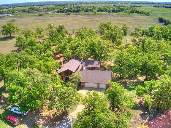 *Multiple offers received. Please submit all offers by 4:00 PM on 5/6* Welcome to the COUNTRY! This ranch-style home has AMAZING land with almost 6 acres and a pond! 3 bed, 2 bath, along with 2 living rooms and 3 car garage home has a great FLEX PLAN! Additional bonus room above garage completely finished with heat/air, includes a closet, cathedral ceiling & cedar beams. Wood-burning fireplace that ties into central heat/air makes your electrical bills CHEAP! HUGE master suite, featuring sunken tub, TWO vanities, TWO walk-in closets and a great shower! Kitchen has LOTS of storage, dishwasher, AND electric stove. TOTAL electric home! Along with the home is a 1,000 sqft old Sante Fe railroad BARN moved to property in the 1980s. Gazebo, storage buildings, and storm cellar included in home. The home has Well Water (NO water bill), pump is 1 year old, including NEW pressure tank. NO covenants, OUTSIDE City Limits, OGE Electric, Atlink internet, and Directv.