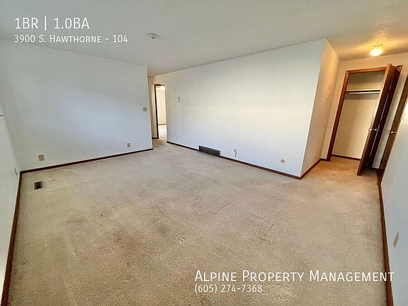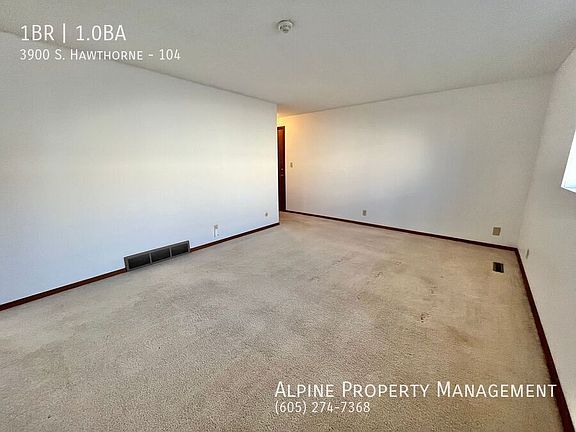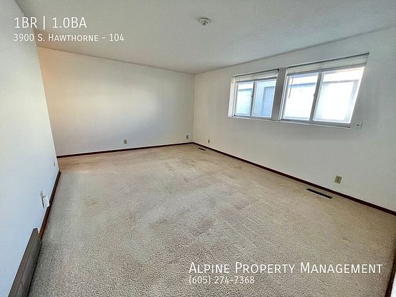 Schedule your tour today for this spacious 1 bedroom apartment with garage included at 3900 S. Hawthorne Ave #104 in Sioux Falls, SD!! This garden level apartment is extremely spacious and has lots of great amenities. The bedroom easily accommodates a king size bed and has two large coat closets. The kitchen comes equipped with refrigerator, stove, dishwasher, and is adjacent to the formal dining room with vinyl flooring. The bathroom has a tub shower, spacious medicine cabinet, and two linen closets right outside. Secured entrance and on-site laundry (on the same floor) for all units. Best of all - the apartment comes with a detached automatic garage at NO extra charge! - $50 application fee per adult - $725 security deposit - Tenants pay electric - Heat, water, garbage, lawn/snow all included with rent!! - Pet Friendly(2 max) and Non-Smoking - Alpine Benefits included for $25/month extra (see website for full details) - Section 8 accepted if your voucher meets the marketed rent amount Professionally leased and managed by Alpine Property Management Central Heat/Air Controlled Entry Detached Garage Included With Rent! Dining Area Garbage Heat Lawn And Snow Care Multiple Linen/Coat Closets Throughout Non Smoking On Site Laundry Online Tenant Portal Pet Friendly Stove Water