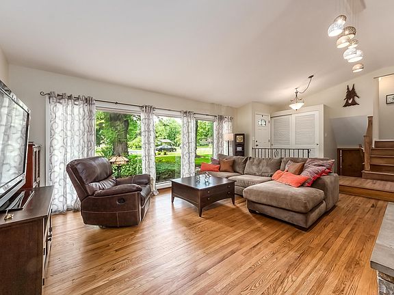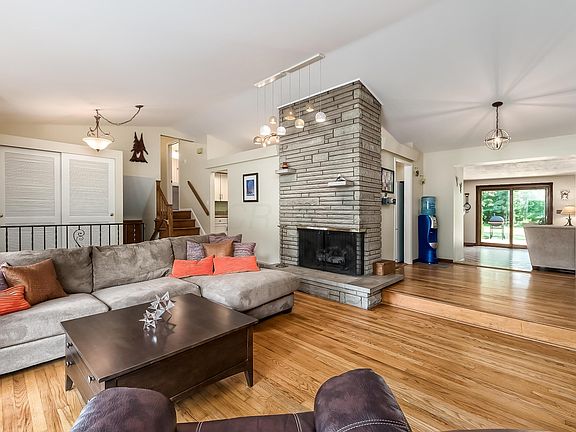 Beautiful mid century modern home on gorgeous lot w/mature trees & lush landscape where wildlife roam. Room addition added a huge first floor Master suite, very rare for a split level floorplan w/ over 3000 sq. ft. of living space. Lots of large windows and natural light with lovely views from all spaces. Living room w/cathedral ceiling, wall of windows & floor to ceiling stone fireplace. Updated kitchen w/granite counters, newer appliances, stone accent wall & breakfast bar open to dining area & family room w/wall of built ins. Master suite has a sitting area, his n hers closets & beautifully remodeled bath. Finished lower level for flex living space. Screened porch is awesome outdoor living space & leads to the expansive deck overlooking your private sanctuary. Numerous updates! See list