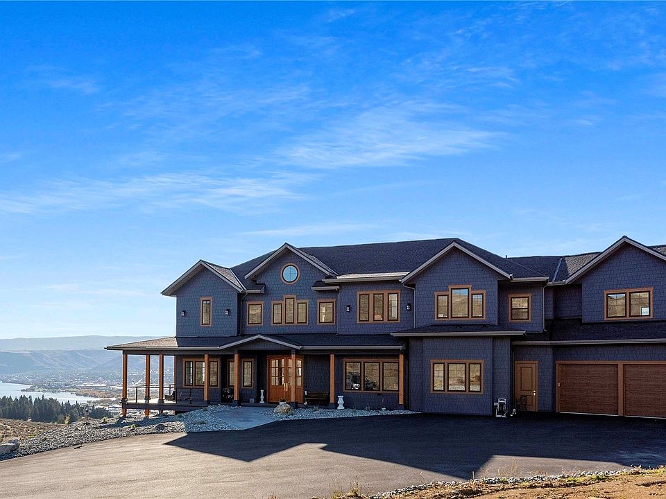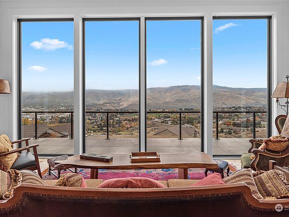 Welcome to Wenatchee's most captivating view home! This custom home showcases the finest craftsmanship & finishes. Enter in to soaring ceilings & wall to wall windows. Living room is light & bright with a stunning gas fireplace. Enjoy a classic lounge situated off the main living room. Kitchen is a chef's dream with all the finest appliances, hand crafted marble island & stunning unlacquered brass accents. Walk-in pantry with separate dishwasher & prep area. Upper floor features a luxury master suite with porcelain tile shower, tub and an incredible walk-in closet. Bonus room & 2 other suites are on the upper floor. Lower Level has its own suite, music room, theater & 2nd kitchen! Property has 2,000 Sq ft of view decking & room for pool.