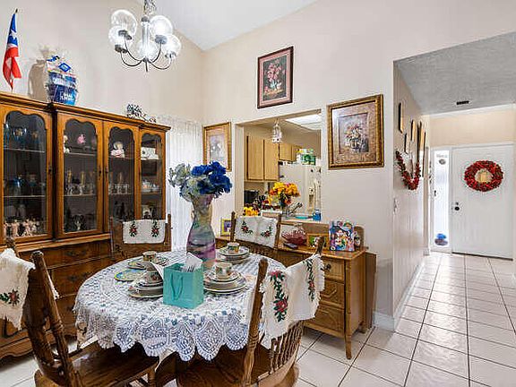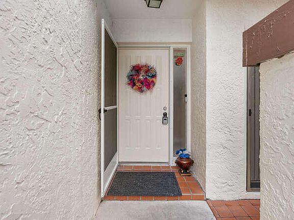 This CBS 55+ Villa offers 2 entrances to the house. The kitchen and dining room area are tiled. Wood flooring in the family room and 2 bedrooms. There is no carpet in the house. The kitchen leads out to the covered front tiled patio. The living area leads to the large, covered, screened in back patio with storage. The patio leads to the garden area. The master bedroom has an exit leading to the back patio area. This house is very well kept. There are 2 designated parking spots in front of the house. AC unit is 2 years old. Lots of closet space throughout the house. Washer and dryer units inside. Both bedrooms are on the opposite sides of the house.