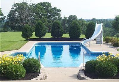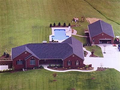 Incredible views! custom built 4 (could be 5, and office) bed full brick ranch on almost 46 private acres. Excellent for entertaining with its open floor plan, covered porch adjacent to in-ground pool. Indoor features include maple cabinetry wtih granite counters, central vaccuum, hardwood, master bath w/whirlpool tub & tile shower, 3 car garage and 48x30 brick/vinyl workshop with 1/2 bath.