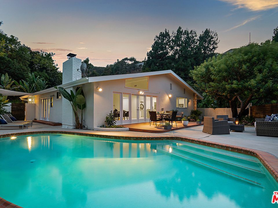 This light & bright 3 bed, 3 bath Mid-Century Modern view home is located south of Ventura Blvd on a quiet cul-de-sac street in the hills, moments to shops & restaurants, yet super private. Recently remodeled w/high end finishes; wide-planked oak floors, all bathrooms updated w/custom tile & fixtures, extra large cooks kitchen w/custom Bulthaup cabinets & quartz countertops, Miele built-in appliances including refrigerator w/matching cabinet panels, double ovens, gas & electric cooktops & hood, coffee machine & wine refrigerator. Both fireplaces remodeled. A large backyard w/lush landscaping & tons of privacy. Saltwater pool, new fencing, multiple seating & lounging areas & grass area perfect for a childrens play area. Paid off solar panel system. Tankless water heater, new laundry room & storage closet. New lift master automatic gate system and all new HVAC ducting. French Doors, plantation shutters. Interior & exterior recently painted. Truly turnkey! Click Virtual Tour for Video.
