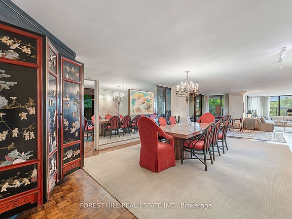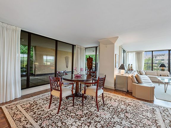 Downsizing never felt so spacious with this rarely offered corner suite with 3-sided 1,400 square foot terrace nestled into the ravine on the coveted private west side of York Mills Place. The open & airy feel flows seamlessly to the refined interior with approximately 2,500 square feet of living space including generous & significant principal rooms throughout. Uniquely offering 6 walk-outs to the wrap around terrace complete with expansive views, this home is bursting with natural light. 2 split bedrooms with ensuites plus a true family room which can double as an office, third bedroom or any other complement to your lifestyle. Renovate & customize to your liking or move right in to this tranquil setting. Two parking spaces in prime location right at the door. Heat pump replaced in 2022. Close to the subway, parks & great neighbourhood amenities. 24 hour concierge. Ample visitor parking. 3 elevators. Hallways and other common areas under renovation resulting in a contemporary, sophisticated & fresh update.