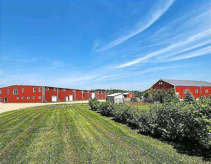 Incredible opportunity to own a fully operational, income-generating equestrian and event facility on 138 acres, just 32 minutes W of Red Deer on paved Hwy 11. Priced well below Appraised and Replacement value, this property features a 25,000 sq ft Steel Engineered heated Arena. Newly built in 2015, you will be hard-pressed to find bigger than this 100ft WIDEx 250 LONG ! You could turn it into a HOCKEY RINK or INDUSTRIAL BLDING if you chose to! With 105 acres of Hay land, you don't have to out-source your hay, steel pipe paddocks for approx. 65 horses, there are multiple revenue streams from boarding, training, clinics, cattle and horse events, making this an easy, affordable lifestyle to enjoy, with staff currently in place! Infrastructure includes a Radiant heated barn, just built in 2022-with 12 Hi-Hog stalls, auto-waterers in each stall & a 14ft Lean-too, a 40x80 ft Hay/Equipment shed, two water wells, two septic systems, a Viewing lounge with kitchen. The upper Mezzanine is already plumbed with 6 Bthrms & a Kitchen. The 2013 - 4 Bdrm/ 2-Bth modular home & ALL essential horse equipment to operate the facility is included OR can be excluded for a reduced price if you prefer to keep it private, change businesses and/or build your DREAM HOME!Stunning mountain views, PAVED access on 2 sides, major Hwy Twinning upgrades scheduled and a mere 30 min drive to HWY 2 Corridor, this is a strategic long-term investment. A rare, ready-to-go opportunity for business and an affordable lifestyle!