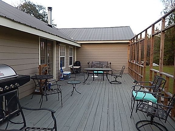 COME ENJOY THE WILDLIFE, INCLUDING DEER AND WILD HOGS TO HUNT IN YOUR BACK YARD. PROPERTY WITH LOTS OF ACREAGE, AT THE END OF A COUNTRY ROAD, ALONG WITH A HOME WITH LARGE DECK, WOOD CABINETS, GRANITE COUNTERS, WOOD FIREPLACE AND OPEN FLOORPLAN. MASTER BATH HAS DOUBLE VANITIES, SEPARATE SHOWER, DOUBLE CLOSETS AND JETTED TUB. 2ND BEDROOM HAS BUILT IN WINDO SEATING. THE HOME IS RAISED HIGH WITH BRICK STEPS LEADING UP TO IT AND OPENING UP TO LIVING ROOM, WITH CUSTOM BUILT INS AND KITCHEN COMBO.