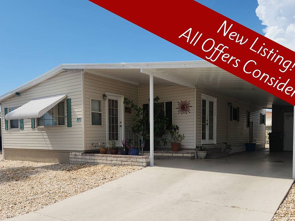 Capture the epitome of elegance with a perfect blend of comfort, style and Florida charm. This amazing 2 bedroom 2 bath home offers a refrigerator, stove/range, microwave, washer and a dryer that is 5 months old. As you enter this lovely home, you are met with an attractive entry way leading through double doors in a cheerful kitchen, large living room and dining room. The bonus Florida room overlooks the front yard which is enclosed, where you can enjoy and entertain guests or read a good book after a long day. The ceilings are paneled, the walls are drywall and the floors are wood laminate and vinyl plank. The bedrooms are a good size and the bathrooms are tastefully decorated. One exceptional highlight of this home is that the roof is a roof over installed in 2025. The other highlight is that there are 2 storage sheds and a large carport housing 2 cars comfortably. There is an electric water heater and an air conditioner creating airflow throughout the house constantly or as you need it. This home comes partially furnished and the lot rent is $667.00 and includes the amenities of the park. Located in Seabreeze Estates, a 55 community that embraces the Florida lifestyle and offers a clubhouse, community pool, library and billiards. It is centrally located to restaurants, shopping plaza, medical buildings, our famous airports and of course our beautiful Florida beaches. Call me to view, I will be delighted to tour this great home with you.This home is worth looking at, because it is definitely a slice of paradise in Florida. All listing information is deemed reliable but not guaranteed and should be independently verified through personal inspection by appropriate professionals. Integrity Mobile Home Sales cannot guarantee or warrant the accuracy of this information, measurements, or condition of any property. Measurements are approximate. Lot rent is subject to change.