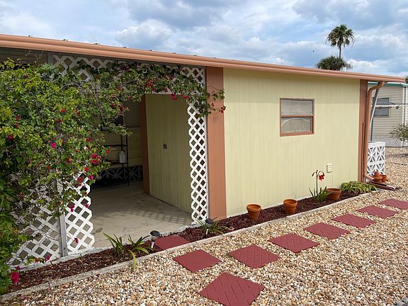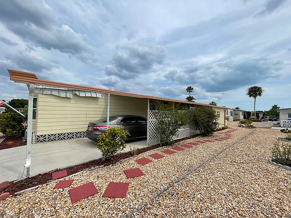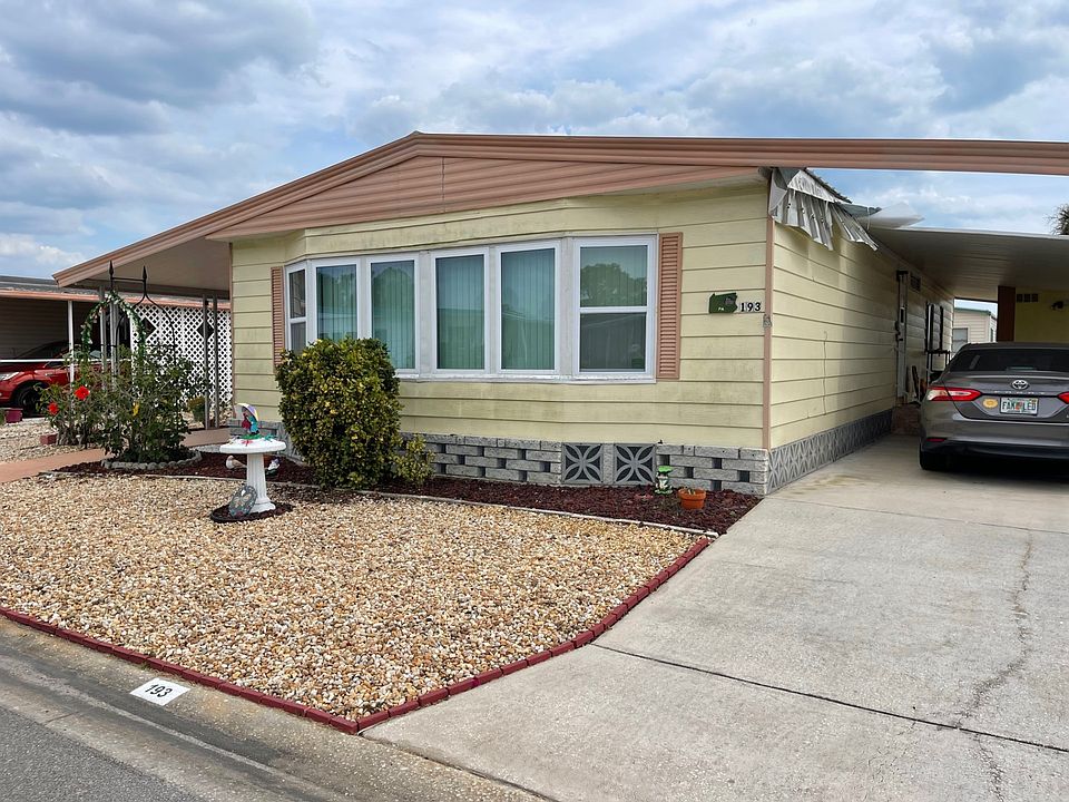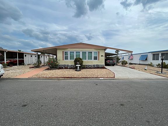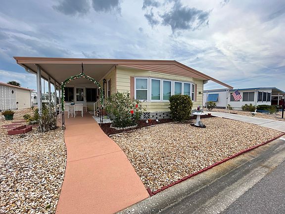 This beautiful home just hit the market at Seabreeze Mobile Estates, an active 55+ community in Bradenton. The exterior features a large covered car port, with room for at least two vehicles. At the end of the carport you will find a large workshop/shed with a washer, dryer and a sink. The inside is very spacious and well maintained. Flooring was updated in 2022, with hardwood and carpet. The kitchen has all the necessary appliances like a dishwasher, garbage disposal, microwave, oven and fridge! Lot rent is a very reasonable $590, it includes garbage pick up, amenities, and HOA fees, perfect for snowbirds or permanent residents. Seabreeze is a beautiful community just minutes from Ana Maria Island with a tennis court, pool, and a fabulous clubhouse with weekly events. This home will not last long, don't miss out!
