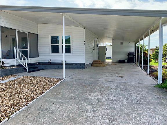A spacious double-wide home has been recently renovated. The exterior of the home has a screened-in porch, covered carport, and a large shed. The interior features a modern updated kitchen with stainless steel appliances and garbage disposal, a master bedroom with an ensuite bath, and a private guestroom. The home comes partially furnished and is equipped with a washer and a dryer. The attention to detail is very apparent in this home, the floors, walls, windows, A/C unit, and all the electrical/wiring has been replaced in 2020 MOVE IN READY. Lot rent is $463, perfect for snowbirds or full-time residency. The park has a tennis court and pool with a great club house with many activities and is also close to the beach. Don't miss this opportunity, home is priced to sell!