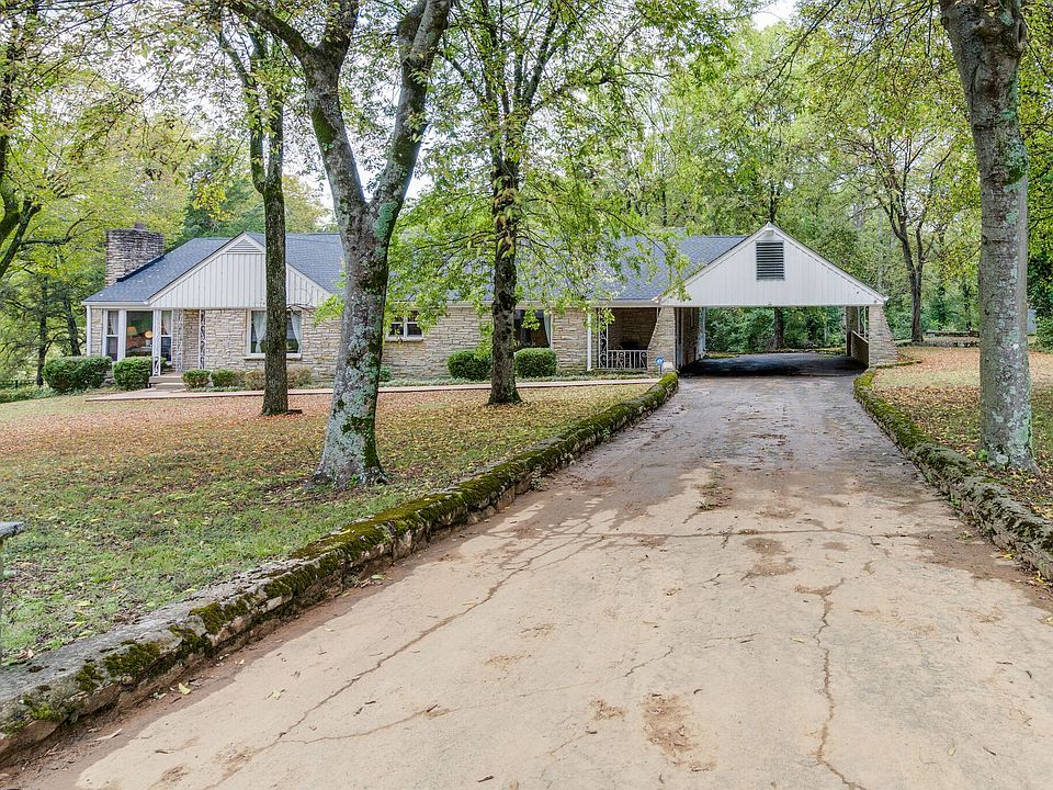 Mid Century Modern Home . OPEN HOUSE NOV 5 th 2 to 4.. Wooded area in the back with trails, serene sitting area, and creek. Built in 1949 with some amazing features for that time period: home is open floor plan & has the original hardwood floors under carpets, featured brick wall with 2 ovens in retro kitchen, circular driveway, 2 large bedrooms with a Jack & Jill bath, 3rd bed next to a tiled bath with an oversized walk in shower. Also features a large downstairs entertainment area with a full retro kitchen& bath, and nice exit to the grand outdoors. 1 covered porch & a Florida room in back of the home to enjoy nature at its best. An attractive building was added for storage, playhouse, office, or anything your heart desires.