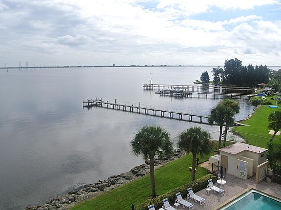 A tucked away community nestled on the Indian River. Top floor river front condo features a private balcony, extra storage, and views you don't want to miss. Kitchen with granite counter tops, 42'' cherry cabinets with crown molding, black flat top range, built in desk and breakfast bar. Living/dining room combo has tile flooring and double door sliders to private balcony. Master bedroom with wood laminate floors, large walk in closet, and a master bath. Enjoy the morning sun raises on the balcony sipping your coffee. Community pool and fishing pier.