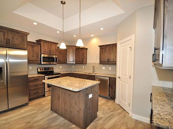 A "STAND OUT" three bedroom Patio home built by Paramount Builders features arches, coffered ceilings and details throughout. A spacious kitchen with KNOTTY BIRCH CABINETS & Granite Counters extends to a sizable dining room. An indoor gas fireplace and outdoor covered patio create room to relax. ENERGY EFFICIENT details include: 2x6 construction, 2 inches of insulation under the slab on grade, QUALITY WINDOWS, R-21 Wall Insulation, R50 Ceiling Insulation, HIGH EFFICIENCY gas forced air Furnace and water heater, solid core doors. A fully finished HEATED garage (approximately 24x26) with hot and cold water & floor drain offers a BONUS LOFT/storage area. OPTIONAL $125.00/month association fee for snow removal, fertilizer & lawn care.