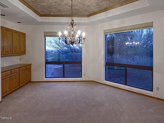 For more information on this property, contact the Listing Agent, Robin Sue Kaiserman at (520) 918-5411 or robinsue@robinsue.com. CHARM AND ELEGANCE WITH MAJESTIC MT. AND CITY VIEWS ON 1.4 ACRES IN PRESTIGIOUS GATEDCATALINA FOOTHILLS ESTATES # 10, CUSTOM BUILT BY MASTER BUILDER JEFF WILLMENG, EXQUISITELIVING ROOM W/HIGH BEAM CEILINGS, LARGE PICTURE WINDOW, ELEGANT FIREPLACE, FORMAL DINING ROOM,GOURMET ISLAND KITCHEN W/ TALAVERA TILE COUNTERTOPS, GAS STOVE TOP, DOUBLE OVENS, SUB ZERO, PANTRY,LOVELY BREAKFAST AREAOPEN TO FAMILY ROOM WITH FIREPLACE, 4 BEDROOMS (SPLIT PLAN), 3 BATHS INCLUDING MASTER W/ JACUZZI TUB,WONDERFUL SHOWER, LARGE WALK-IN-CLOSET, BRAND NEW CARPET THROUGHOUT, MASONRY/STUCCOCONSTRUCTION. ENJOY 2 COVERED PATIOS,(ONE FOR THE CITY VIEWS AND ONE FOR THE MT. VIEWS), SERENE BACKYARD, CIRCULAR DRIVEWAY, 3 CAR GARAGE AND DIST. 16 SCHOOLS. FLOOR PLAN LOCATED UNDER PHOTOS, THEN VIRTUAL TOUR.