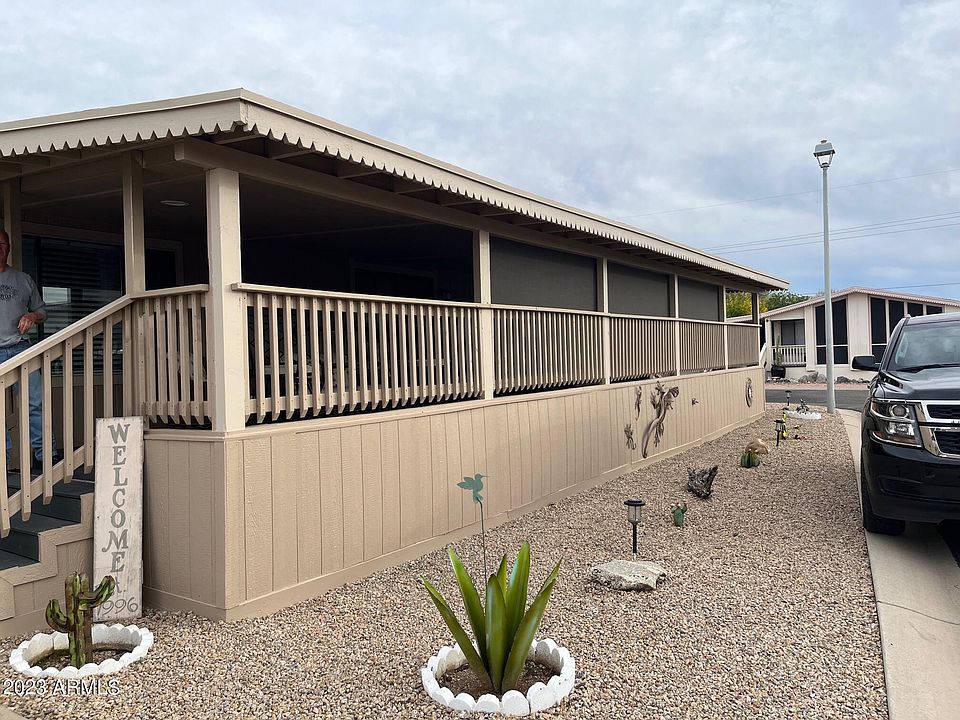 You will love this remodeled 55+ manufactured home that has been updated with white cabinets, Gray woodlike plank flooring and solid surface countertops throughout! 2 bed/2bath in the high demand Paradise Peak West manufactured home park. This lot has rare 2 car carport and workshop plus a 3rd covered parking space and extra wide front covered porch/deck. Newer Exterior paint. This park has a 24/7 manned guard gate, a 9 hole executive golf course, swimming pool, heated spa, pickleball courts, a clubhouse with social club &more! All of this is included in your land lease of approx $950/month. It also includes water&trash. Great location off the 101 near Desert Ridge. Make appointment to see this one now! Note: Buyer needs park approval for land lease, 2 dog max at 30lbs ea., No rentals.