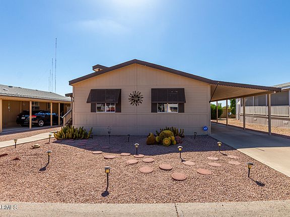 Come see this beautiful home located in the highly sought after 55 plus gated community of Paradise Peak West! This community has it all including a pool, hot tub, unlimited golf, pickle ball, bocce courts, clubhouse and planned activities. Also included in your land lease is water, sewage, and trash utilities! This 2 bed, 2 bath home offers a welcoming open floor plan, vaulted ceilings, and perfectly placed skylights letting the perfect amount of light in. The spacious living room flows seamlessly to both the dining area & kitchen. In the gallery kitchen you will find wood cabinets, built-in appliances, and a cozy breakfast bar. The oversized master suite showcases a walk-in closet, and a private bathroom with dual sinks. The private backyard provides gorgeous mountain views.