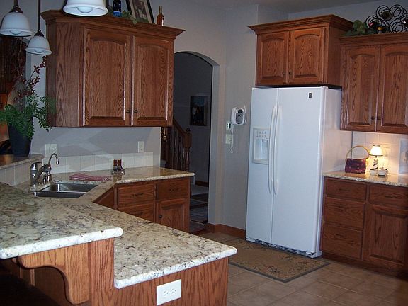 Casual elegance...waterfront property, perfect for family & entertaining. Main floor features a master suite w/jetted tub, heated floor, ceramic tile shower, unique white granite counters, plus a 2nd bedroom/office & 3/4 bath. Open kitchen features double ovens, granite, custom oak cabinets w/pull outs (cherry stain)& breakfast bar w/informal dining room. A two story Great Room w/gas fireplace & huge energy efficient Anderson (tinted) windows overlook the water. Main floor formal dining & 2 story foyer w/Lyptus hwd flooring, 1/2 bath & laundry room off the 3 stall heated garage w/sink. Upper level has 2 large bdrms w/walk-in closets & full bath. Bsmt has area for pool table, includes wine room, wet bar w/dishwasher, exercise room w/mirrors, family room w/gas FP, 3/4 bath w/5ft. shower & LOTS of storage. 1 of 2 bdrms down has its own sink/vanity area & walk-in closet. Breathtaking view, beautiful yard w/rock garden & paver block patio, covered deck, minutes from river. Owner/agent.