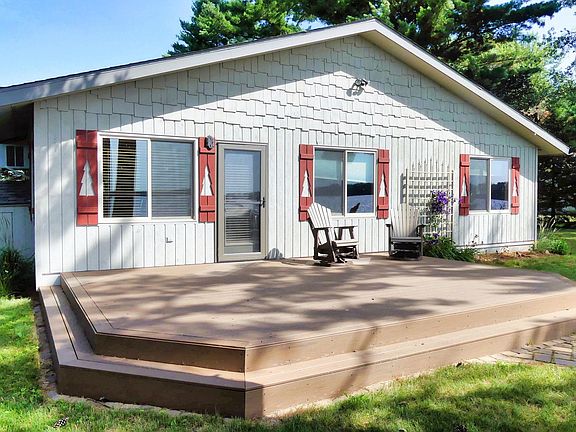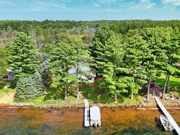 The best hard sand beach on the highly sought after North Sand Lake. Perfect elevation to the lake! Sand Lake is crystal clear and has a maximum depth of 73 feet. Lots of natural wood in this awesome cabin with attached two car garage. The 3rd bedroom is currently used as a family room and has open shelves and not an enclosed closet. Seller is willing to sell the cabin furnished too!