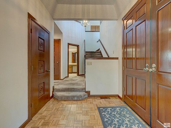Nestled at the base of the Sierra Nevada mountains, this striking 1.6-acre Lakeview property is located within walking distance of world-class hiking and biking trails, yet only a short drive to historic downtown Carson City, Carson and Tahoe Regional Medical Center, and the city of Reno, as well as a multitude of recreational activities, including fishing, kayaking, skiing and snowboarding., The property backs up to acres of undeveloped county land, and its towering, majestic pines provide a haven for deer and other wildlife. With its vaulted ceilings, open floor plan and stunning wooden doors throughout, this home is an architectural delight that offers spectacular interior and exterior views. Impressive front double doors open to expansive living room/dining room spaces that include a wood burning fireplace, a bar area and access to an adjoining solarium and back and side decks. The spacious kitchen features a large center island, pantry, Corian counters, a breakfast bar, extensive storage spaces and brand-new appliances. The kitchen opens to a cozy family room with a second wood burning stove. Also on the main level is a half bathroom and a laundry room with additional storage. Upstairs, the new owners will wake up to impressive views down to Washoe Lake and beyond, as well as access to a private upper deck at the back of the house. The master bedroom suite includes a walk-in closet, and a large bathroom with dual sinks, an oversized, marble-tiled shower and a jetted tub. Three additional bedrooms upstairs all have ample storage and share a full bathroom with dual sinks and a shower. The house has been recently updated with new interior and exterior paint, updated decking, and dual HVAC systems, with two AC units added in 2021. With over 1,100 square feet of redwood decking, a delightful covered front porch, mature landscaping, a horseshoe pit, dual driveways and a 3-car garage, the property is ideal for enjoying life and entertaining friends and family. Schedule your showing today!