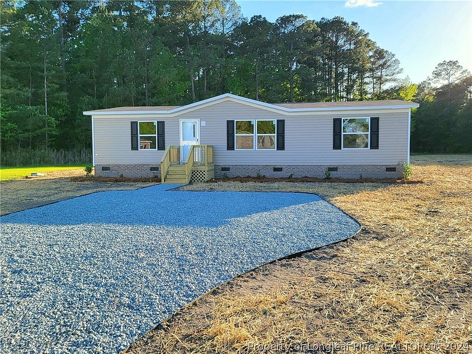 Brand New 2024 Manufactured home on over half an acre. There is a front deck and a back deck. The kitchen features black Frigidaire appliances and an island. There is NO carpet in the entire home. This home is conveniently located in the Cape Fear High School District and is ready for its new owners.