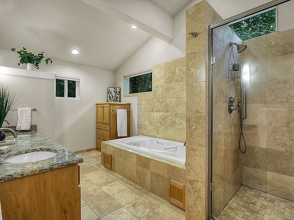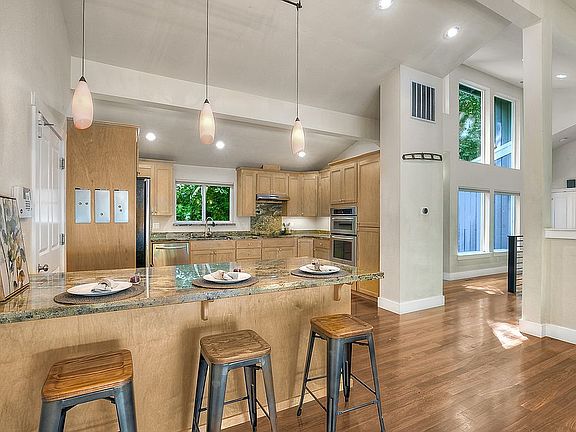 Northwest Modern home nestled on ~4.5 acres over 2 parcels! Expansive entry w/ vaulted ceilings opening up to a natural light-filled living room w/cozy fireplace. Stylish kitchen feat. stainless appliances, granite counters, bar seating & access to large back deck - ideal for entertaining! Escape to the master suite w/ huge ensuite bath, including dual vanities & soaking tub. Loft office space, 3-car garage w/ shop, yard is personal playground - firepits, gazebo, room to garden & walking trails!