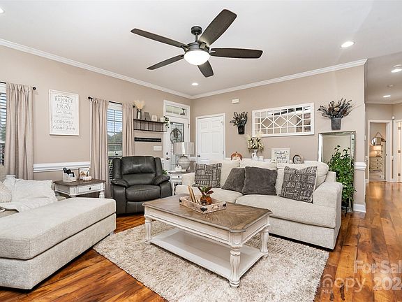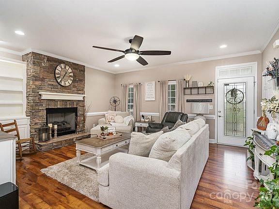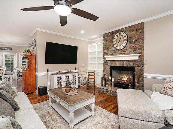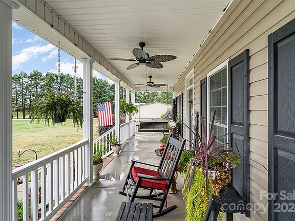Nestled on an expansive 1.08 lot this charming and immaculate home has a lot to offer! As you arrive at the home, you notice the large rocking chair front porch complete with a swing and ceiling fans. Upon entering the front door, you are welcomed by a spacious living room featuring a stone, gas log fireplace, beautiful built-ins, chair rail and crown molding. The dining area is straight away with double doors leading out to the back patio and an outside dining area covered by a pergola. The well-appointed kitchen features stainless-steel appliances, granite countertops, a panty, and a breakfast bar perfect for two. Down the hall you will discover two guest bedrooms and the main bathroom with one bedroom connected to the bathroom. The spacious primary bedroom boasts a tray ceiling. The primary en suite features a large double vanity, granite countertops, tiled shower, and a walk-in closet. Behind the house you will find a 31 x 23 detached garage with an attached 2 car carport.