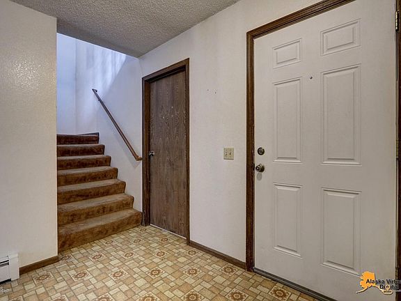 Great potential! Spacious townhouse-style home in a quiet East Side neighborhood at the base of the Chugach Range. No HOA or dues. Perfect opportunity to build equity through a cosmetic makeover. Bedrooms down, and living area upstairs to take advantage of the beautiful mountain views. Fireplace, cathedral ceilings, partially fenced backyard, and a 1-car garage. Close to JBER and shopping.