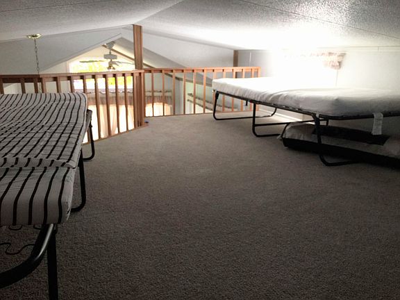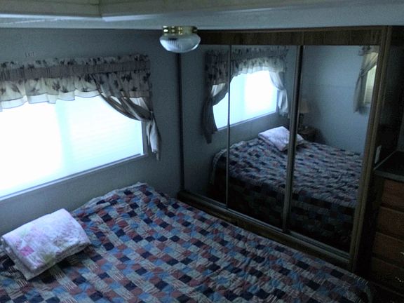 2002 40 foot long Quailridge park model, 0ne bedroom with a double loft, heat and AC, 12x19 durabuilt porch with drop drapes and an open porch as well. Has refinished countertops, new toilet and new ondemand water heater. Park model is at Holiday Shores RV Park, it is a seasonal site.