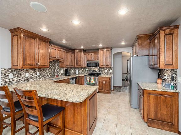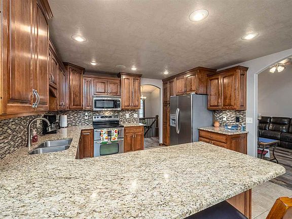Gorgeous 5 Bed, 3 Bath Garden Level Ranch Home in Popular Prairie Gardens Addition! Awesome Southeast location and a quick walk to Harmondon Park! This stunning home is packed with highly sought after features including 3 beds on the main floor, high end finishes, 2 fireplaces, distributed audio, and much more. Kitchen is luxuriously appointed with custom Bullseye Birch cabinets, stainless steel appliances with double oven, granite counters and undermount sink, tile backsplash, and under cabinet lighting. Spacious master suite offers a trayed ceiling with accent lighting, full bath with dual sinks, and large 10'8"x4'8" walk-in closet. HUGE lower level family room is an entertainers dream with a tiled wet bar area with pub tables included, gas fireplace, and dazzling polyurea floor. Fully fenced backyard offers a 13'x11' covered deck, patio with convenient propane firepit, under deck storage, and over 100 beautiful plants and shrubs surrounding the house. Far too many amenities to list!