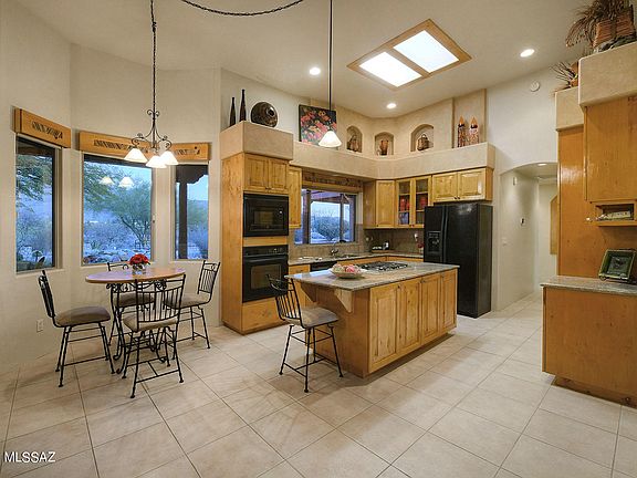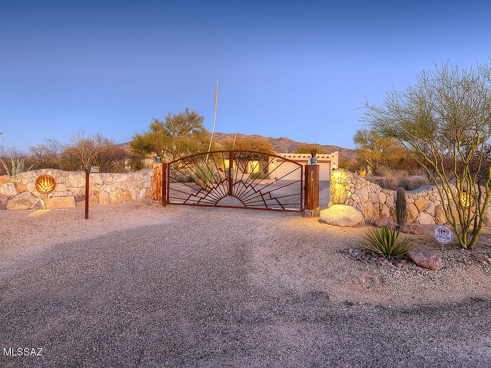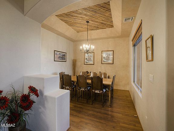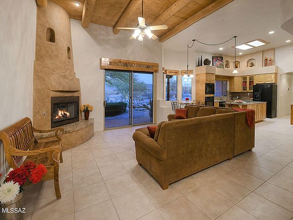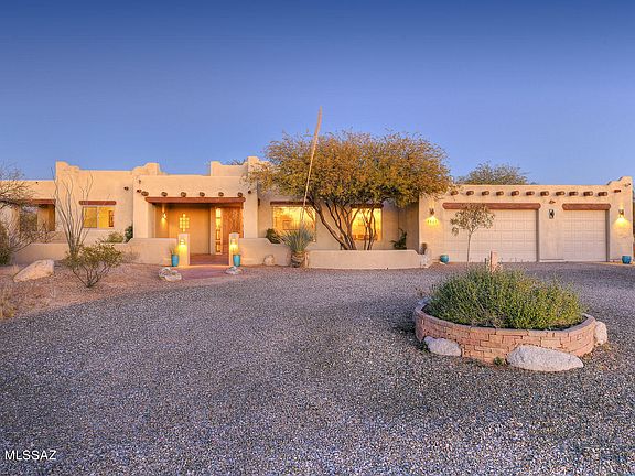 * Located within the Saguaro National Park East Buffer Zone, this Stunning Santa Fe Home sits atop a Ridge affording Panoramic views of 3 Mountain Ranges & City Views. Nestled thoughtfully into the surrounding landscape, one can appreciate the Quiet and Beauty of the Views and Wildlife. This 4 bedroom/3 bath home has a split floorplan w/ Master Suite ,1 guest/office bedrm & bath on one side & two bedrooms/bath on the other. Kitchen features open floorplan w/Granite countertops & Alder cabinets, open into Family room offering East facing wall to wall windows w/unobstructed views to Saguaro National Park East. High ceilings, Formal dining room w/Ocotillo rib accent ceiling & Living room provide Western City & Mountain views. The backyard & views are Spectacular and speaks for itself, Come See