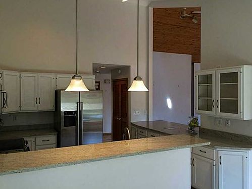This home is one of a kind. A rare setting of pond, pool, and nearly an acre of tranquil privacy. Vaulted ceilings and tall windows fill the home with light. The updated kitchen includes gorgeous granite, white glass fronted cabinets, & stainless steel appliances. A sunroom features a brick floor and lovely view of the fenced backyard to pond. The master has a private entrance to the deck, walk in closet, and double sinks in a granite topped vanity. All of the yard care and pool maintenance is included in rent. A modern cottage feel makes this home a standout. It won't last long! Call (317)610-0600 for a showing today!(zbl-4-12807175152)