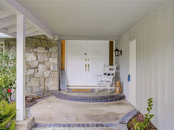 This beautiful 4-bedroom, corner lot, pool home features neutral modern tones, recessed lighting, crown molding, larger baseboards, Italian Marble flooring and upgraded wood laminate flooring makes for an elegant space. The spacious living room boasts a stone fireplace for wood burning or gas and newer carpet. The large windows allow an abundance of natural light to illuminate the open floor plan throughout. The spacious kitchen impresses with Cherry tone custom cabinetry, some cabinet with glass insert doors, Corian countertops, plenty of storage, large pantry, multiple built-in spice racks and Lazy Susan’s. The appliances include a 5-burner gas cooktop, range hood, double ovens, microwave, dishwasher and refrigerator. A large breakfast counter top with pendent lights and high stool bar seating. Adjacent is a separate dining room with gorgeous Italian Marble flooring and light fixture, this open space is great for a large dinner gathering. The family room features a sliding glass door that leads to the open back yard. A large downstairs bedroom with mirrored wardrobe doors and planation shutters. The three-quarter bathroom features single sink, granite countertops, custom cabinets, glass enclosed step in shower and a door that leads outside. Inside laundry area with washer and dryer complete the downstairs. Up the stairs are the three secondary bedrooms with newer carpet, mirror wardrobe closet doors and blinds. The full bathroom features a single sink vanity, granite countertops, custom cabinet, shower in tub with beautiful tile and ribbon insets. Relax in the spectacular backyard with a sparkling black bottom pool, Grotto spa, beautiful waterfalls, (Pentair Pool Equipment) with slide, stone pool deck, raised stone planters with mature Queen Palms and fire pit, all perfect for entertaining. This corner lot home features a welcome home entry walkway, well-manicured grass and planters. A three-car garage, extended driveway, direct access, storage racks and cabinets. Multiple upgrades include Solar PAID, A/C unit, Tankless Water Heater and Dual Pane Window. Nearby park, shopping, restaurants, Award Winning School District. Welcome home!