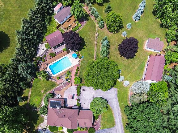 Unique estate on 3.5 acres w/entertainment complex. Fox In-ground pool, cabana w/vaulted ceiling & French doors, stage, open air bar, multiple decks , patios and separate pool house. Detached 3 car garage w/2 large rooms finished on 2nd floor plus additional 1 car detached garage. Home features gorgeous Sun Room, stunning Family/Great Room & updated kitchen w/granite and ceramic.
