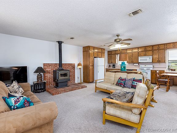 The perfect HOME ON THE RANGE with 150 acres of great pasture and grazing land for your cattle and horses. Property is a perfect starter ranch or retirement ranch with endless views of beautiful Oklahoma sunrises and sunsets. Located five miles from Blue River Public Fishing and Campgrounds and seven miles from Ole Red in downtown Tishomingo. The two bedroom, two bath home almost feels like you've stepped back in time the moment you walk in the door. It is immaculately clean for an older ranch home and includes a wood burning stove, open concept living and kitchen area, and a bonus living area. Two water wells supply the home, and ranch, with water. The barn, working cattle pens and cross-fenced land makes it easy to bring the cows with you with you when you move in! It's a turn key ranch ready for your next adventure. All furniture and appliances remain with property. ALL OFFERS MUST HAVE FINANCING PRE-APPROVAL.
