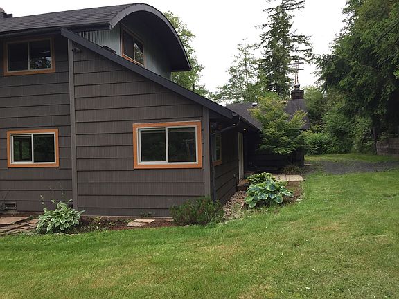 Unique, Creative and Private describe this one-of-a-kind property just outside the town of Astoria which includes seasonal river peek. Warm cozy yet open spaces include a stone-faced living room fireplace,6 years new remodeled kitchen with butcher block counter and real tin backsplash, room for second oven and espresso station, subzero fridge and gas stove, fir cabinetry, flooring 2022, 3 fireplaces and certified wood stove, 2 baths plus plumbing for a third, furnace 2021,quartz bath counters, and upstairs suite. Possible 2 master bedroom suites or in-law suite with 3rd bath.Private exterior setting adjacent to forestry land with just completed septic inspection, barn sided 2 car garage, fire pit, outside speakers, decking replaced 2021 and some new fencing 2022. Truly a Viewing Experience