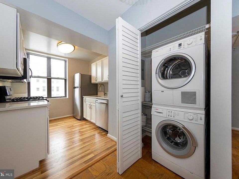 Updated Kitchen and Bath with granite countertops. In Unit W/D and Dishwasher, Remote control fans and central A/C. USB outlets throughout. Hardwood Floors, Walk in Closet, Desk Nook. Bike Parking in basement. Package concierge and staffed building. In-building Gym. PARKING INCLUDED. SECOND PARKING SPOT AVAILABLE FOR ADDITIONAL 150 to 200 Next door to Multiple cafes and restaurants. Photos do not reflect updated Appliances, Backsplash, Bathroom, and hardwood floor. Yet.... 730sqft Pet Friendly / Pet Fee $10/Month + $70 move in fee. Owner pays for Water, and Trash. Renter is responsible for Gas and Electric. Approx. 15/month gas 60/Month electric No Smoking. Lease 12-18 months. Elevator Reservation move-in fee of $200