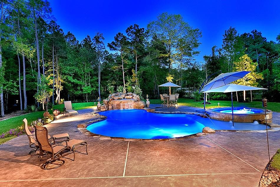 Spectacular 1 story home on over 1 acre corner lot in Benders Landing! Circular drive, amazing trim work, wood beam ceilings, Plantation shutters, generator & abundant storage. Aspiring chefs kitch w/bkfst bar opens to bkfst & den; bonus rm off mstr is perfect for nursery or exercise rm; gamerm & media; all bdrms have ensuite baths; climatized wkshop in garage; exceptional outdoor living w/resort feel; cvrd patio, outdoor FP & kitch, pool/spa, waterfall & landscape enhanced w/lights.NO FLOODING!