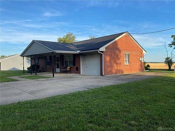 Country living! Brick ranch, 3 bd 1 bath w/attached garage w/opener on .93 acres with 30X40 pole barn w/concrete floor and electric, roof is 3 years old with new gutters & downspouts with newer HVAC. Interior has all new paint, some new lighting, hallway linen closet, tile floor in kitchen, oak cabinets and the carpets have been cleaned. Family room has walkout to concrete patio nice size laundry room. Enjoy summer evenings around the fire pit or on the porch! The pole barn has ceiling light panels & florescent lights and plenty of room for parking, storage or workshop. Additional concrete slab beside poe barn for additional parking. Make an appointment today!