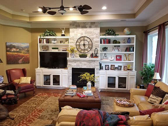 Wonderful David Weekly 4 bedroom/3 bath plus bonus and study. Southfield plan all one level home on a cul de sac in a gated community. Loaded with upgrades: wood and tile floors, granite counters, huge California island in kitchen, upgraded stainless steel appliances, large windows, extensive crown molding throughout, coffered ceiling in MBR, Study, Dining Room and Great Room with built-ins and electric stone fireplace in Great Room and shelves in Study, indoor main laundry room plus secondary laundry area in master suite closet. Bonus area between bedrooms can be used so many different ways, including as an in-law suite. Screened in back porch overlooks the large fully fenced, flat backyard with trees and plenty of space for a pool. Three car garage, water softener, security system, automatic sprinklers, full house speakers and termite bond.